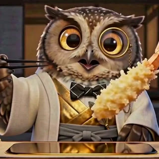 黄金の単眼鏡を掛けた一羽の梟が、桜の庭、寺院の勝手口、深き蒼の海底、夜の焚き火、冬の銀景色を巡ります。見事な登場、可笑しな失敗、魔法のような解決 — 物語が収まるその瞬間、完璧な一皿が目の前に届きます。